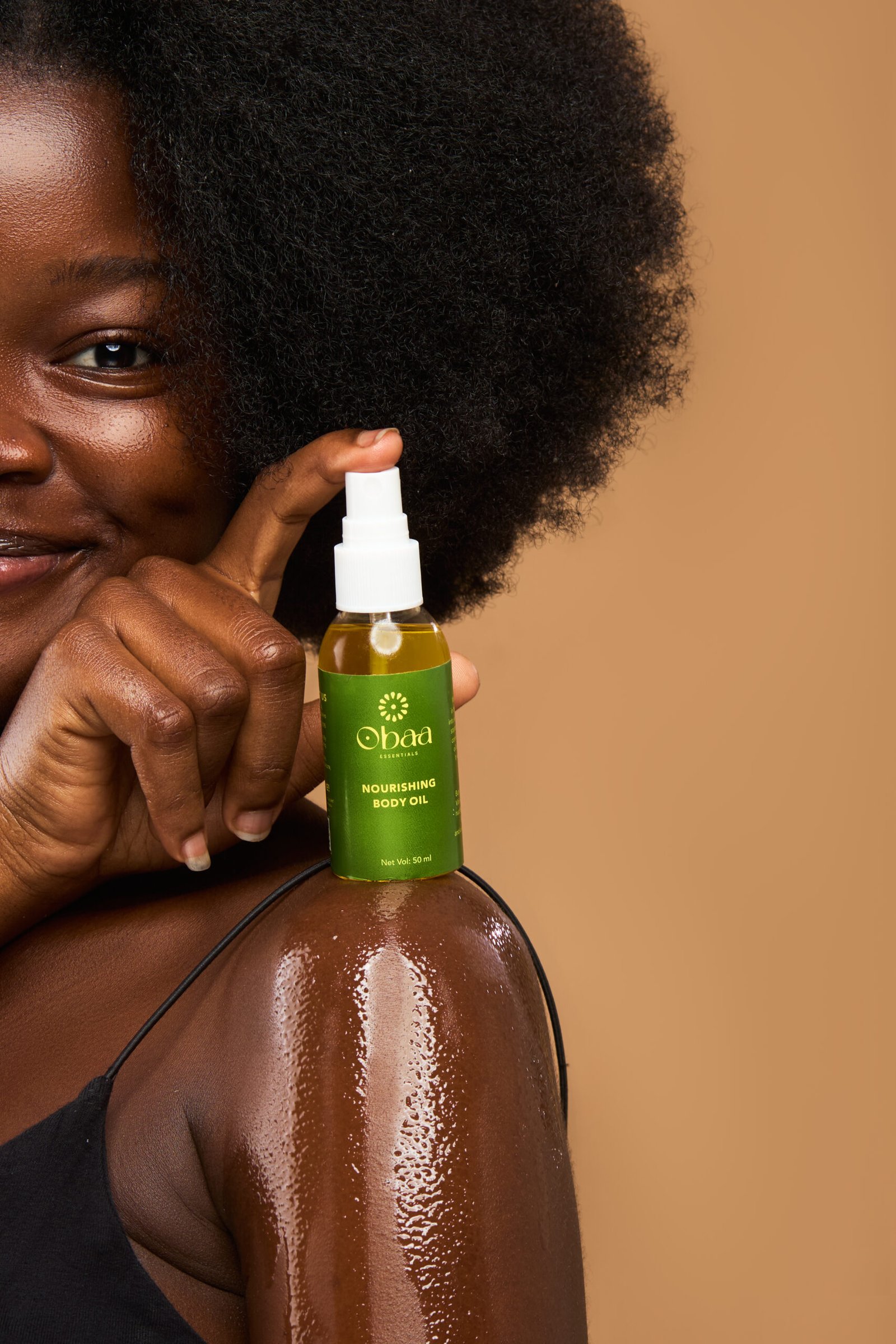 Wrap yourself in the Nourishing Body Oil by Obaa Essentials.